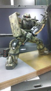 ふむ…今宵は気分が良いので、特別に朕の秘蔵のコレクションを見せてしんぜよう。……ザクである。因みにMGである。塗装は朕のオリジナルにて候。どーであろうかなり良い出来ではないか!この千手観音をも舌を巻く手先の器用さ!!…雷神は多才なのである。こだわった点は、弾痕部分と足まわりの汚れ具合…そしてザクのあの哀愁感…眺めているだけで涙が滲んでくるではないか。ふぅ…今宵はここまでじゃ。……… 最後に一言言い忘れたが…朕はガンダムなんぞ観たことないわ!!!喝!!!