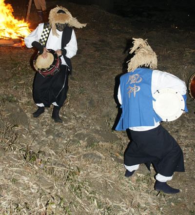 インディアンや原住民が舞踏、反閉するように、快楽的・発散的ではなく、悲しみに耐え、内に力を蓄え、明日に向かって舞うように、鬼は太鼓を打って塵を払います。