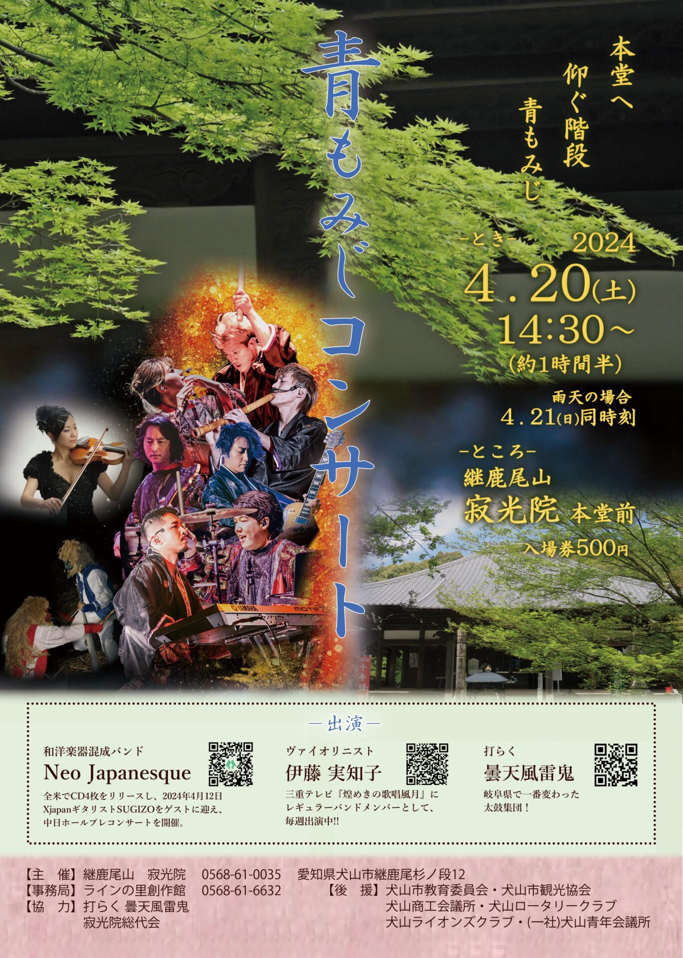 曇天風雷鬼が協力する 継鹿尾山 寂光院 青もみじコンサートのお知らせです。