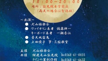 活動告知9月10日犬山寂光院観月会 雅楽、バイオリン、太鼓で彩る夜。是非お越しください。しかし、鬼神様は10分程しか現れない超貴重な存在である。テーマ:自然の神秘とその恩恵日 時:9月10日土曜日18:00~20:00場 所:寂光院聖徳殿入場料500円 2022.09.03活動告知