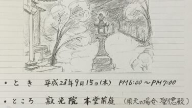活動告知中秋の名月、寂光院の宴 中秋の名月、寂光院の宴 テーマ:自然の神秘とその恩恵日 時:9月15日木曜日PM6:00~7:00場 所:寂光院本殿中庭(雨天の場合は聖徳殿)演 目:篳篥奏者によるわらべ歌曲武道家の舞と雅楽舞楽(蘭陵王)共 催:鬼神太鼓雅楽…もっと読む 2015.09.01活動告知
